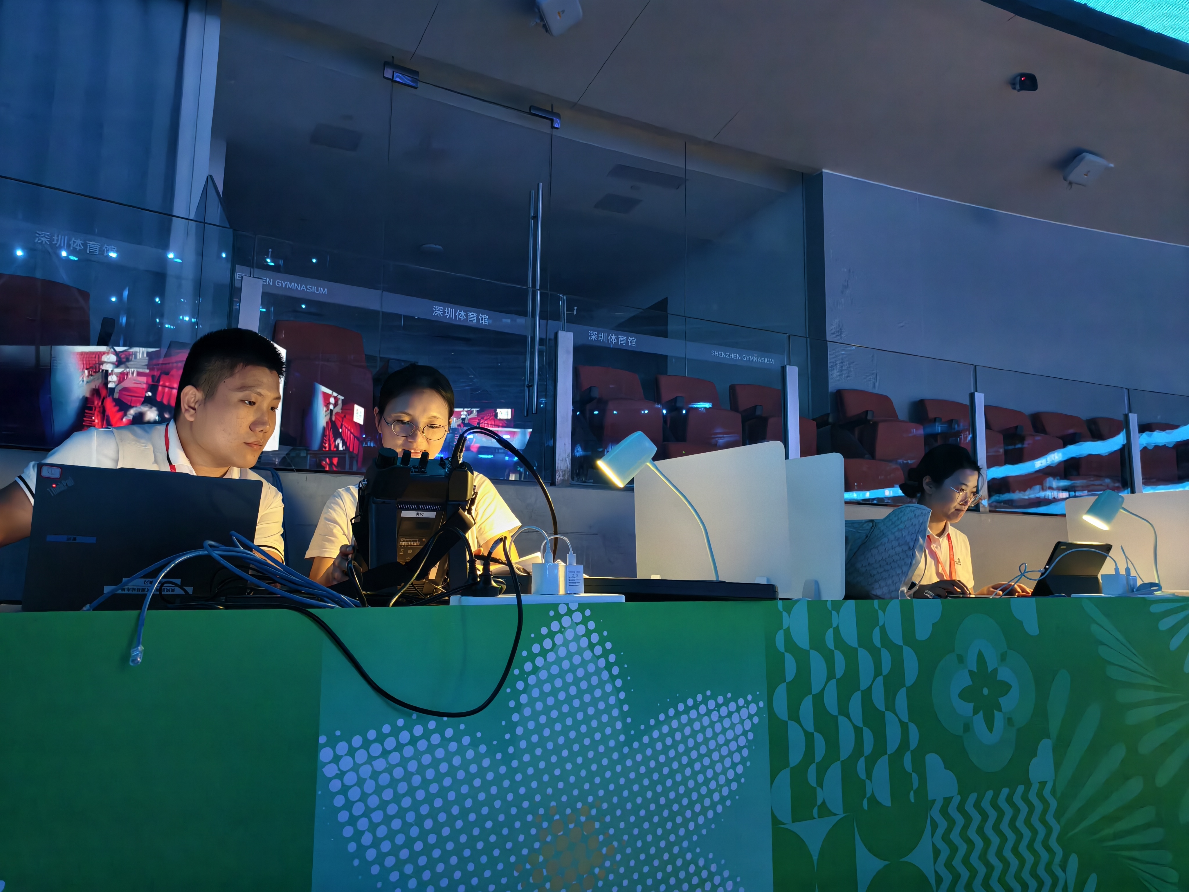 11月7日23:22,随着观众的掌声和欢呼声,第十五届全国运动会羽毛球项目首日比赛在深圳市体育中心体育馆顺利完成。现场观众沉浸在精彩赛事中流连忘返,负责该场馆无线电安全保障的湖北团队也仍然坚守在工作岗位,密切监测着赛后媒体采访等重点频段的无线电信号。