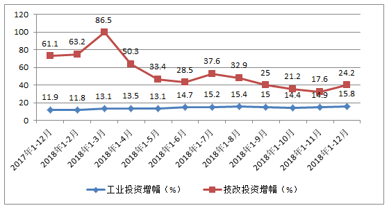 图4 2018年全省工业投资和技改投资增速