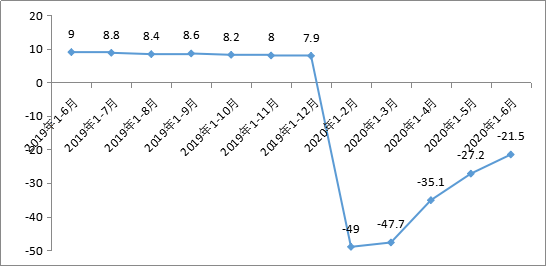 行业增长面趋增。6月当月,全省41个行业大类中有22个行业同比增长,较3月、4月、5月当月分别增加18个、5个和2个百分点,增长面升至53.7%。上半年,全省制造业增加值同比下降21.5%,较一季度收窄26.2个百分点。