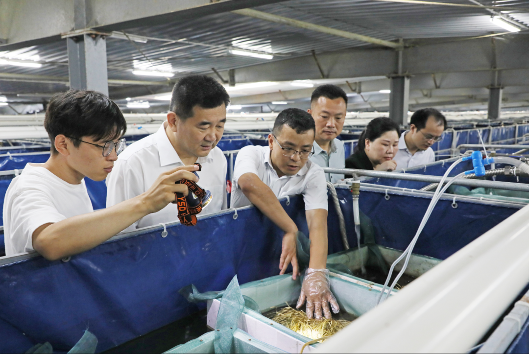 位于仙桃西流河镇的湖北黄鳝产业集团,主要从事黄鳝苗种繁育、生态养殖、稻鳝共作、黄鳝加工与贸易、黄鳝产业技术研究与推广等业务,致力于打造全国最大的工厂化规模化育苗中心。朱万奎察看了工厂化苗种繁育车间,听取黄鳝苗种孵化情况介绍,希望湖北黄鳝产业集团充分发挥龙头牵引作用,加快推动科技创新与产业创新深度融合,提升黄鳝苗种存活率,进一步提升优质苗种供应能力,擦亮“仙桃黄鳝”金字招牌。