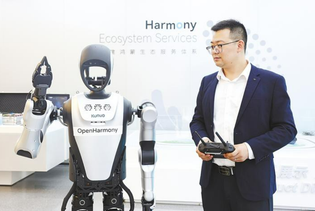 “这台机器人‘管家’正在学习鸿蒙生态里的‘官方语言’。”鸿蒙生态服务(深圳)有限公司总经理、鸿蒙生态创新中心主任杜金彪介绍,“不久的将来,在配备鸿蒙设备的环境中,您只需说‘天黑了,请关灯’,它就能自动调节室内照明;说‘这里需要打扫’,它便会安排扫地机器人工作。”