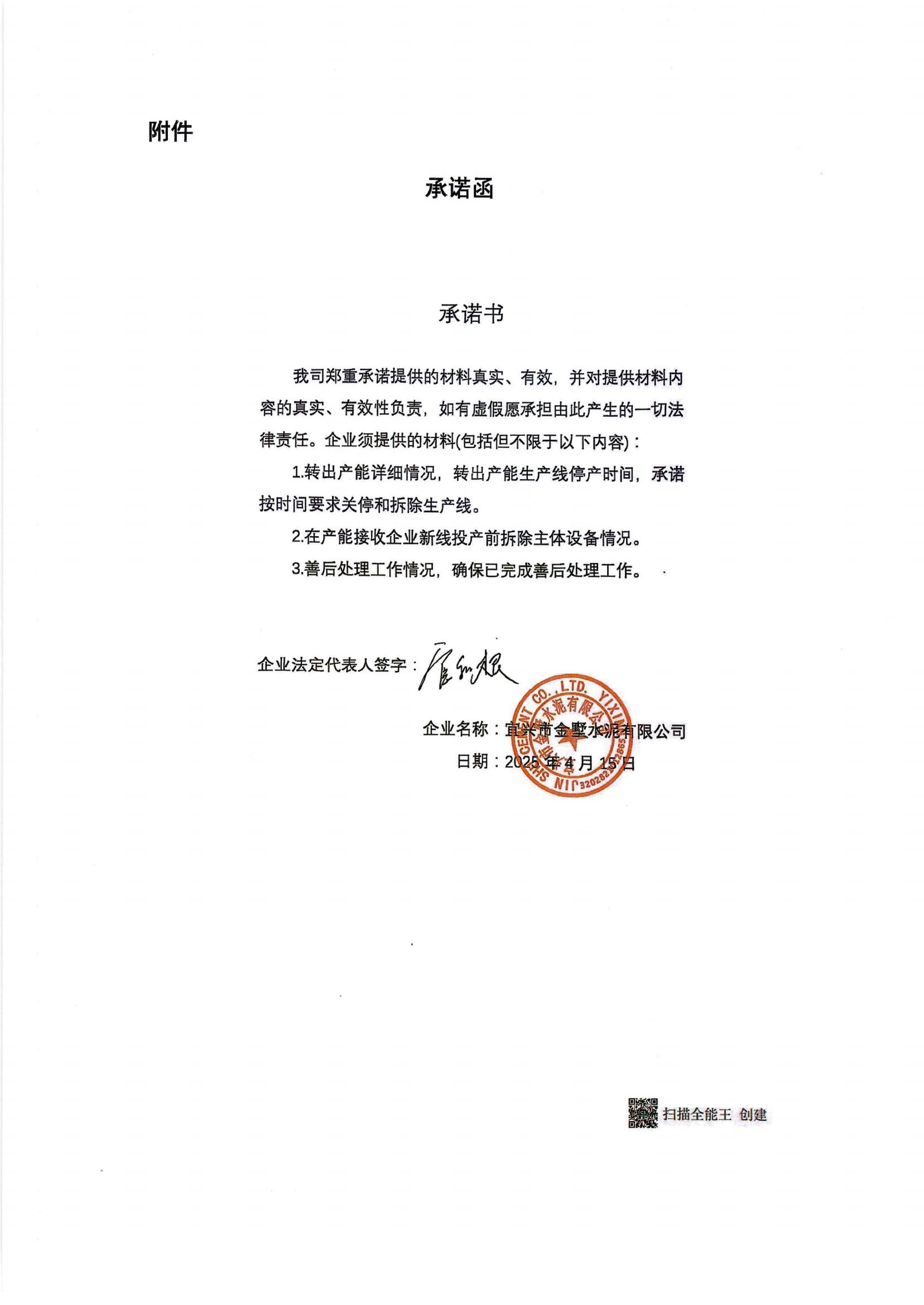 2.宜兴市金墅水泥有限公司承诺函