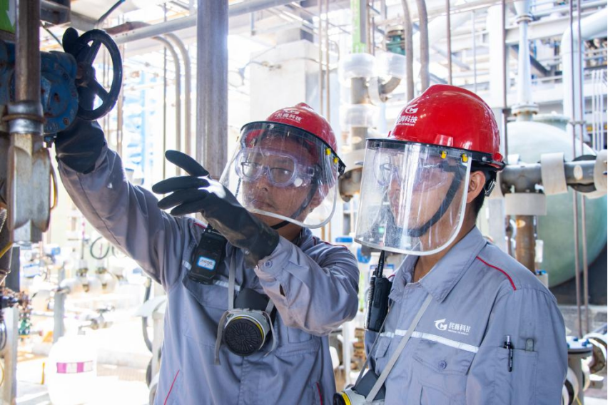 湖北民腾新材料科技有限公司员工正在检查设备运转情况