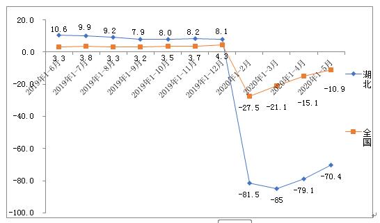 一是下降幅度高于全国。由于我省是疫情防控的重点地区,开工复工进度晚于全国近2个月,我省工业投资增速由持续领先于全国,到大幅落后于全国平均水平。虽然我省工业经济开工复工在加快推进,但要实现复苏仍然困难重重,从2月至5月,各月累计投资增速分别低于全国平均水平54、 63.9、64、59.5个百分点。