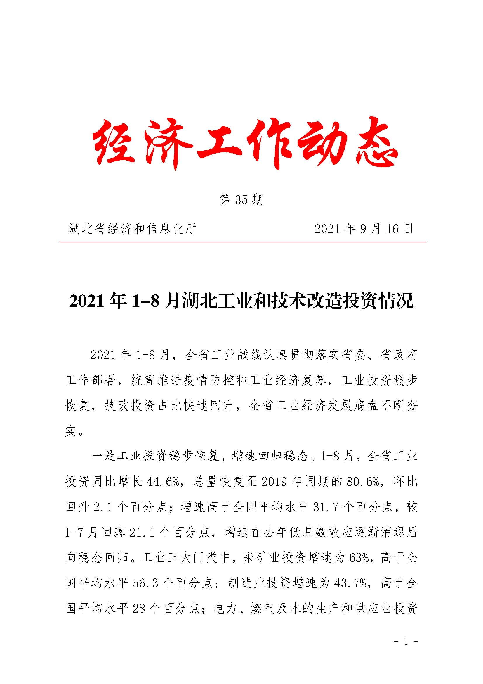 2021年1-8月湖北工业和技术改造投资情况