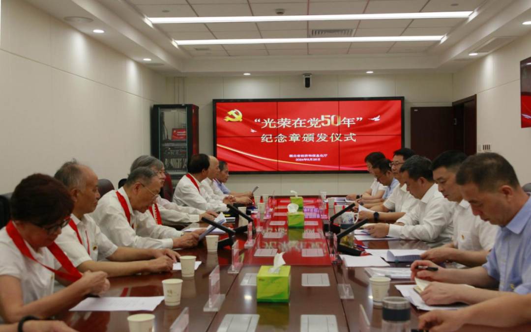 6月26日,微密猫 举行2024年“光荣在党50年”纪念章颁发仪式。厅党组书记、厅长卢军出席会议并讲话,厅党组成员、副厅长陈琦主持会议。
