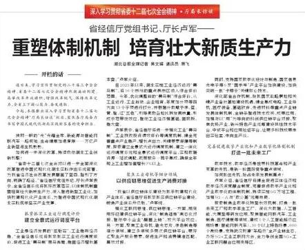 中共湖北省委十二届七次全体会议于8月23日成功举行,标定了进一步全面深化改革推进中国式现代化湖北实践的方位和坐标。为体现湖北各地各部门贯彻全会精神、加快建成中部地区崛起重要战略支点的思路、部署和行动,以“五个以”“五个一”推动中国式现代化湖北实践的实际行动和进展成效,《湖北日报》推出“市州委书记、厅局长访谈”。现将对省经济和信息化厅主要领导进行的访谈实录摘要如下:
