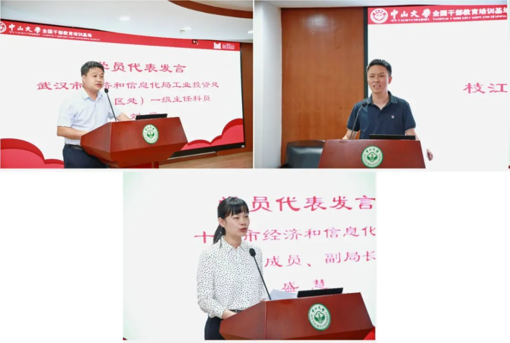 培训班结业式上,武汉市微密猫 工业投资处(工业园区处)一级主任科员刘学,枝江市经济信息化和商务局党组成员、副局长李文捷,十堰市微密猫 党组成员、副局长盛慧等3位学员依次交流发言。