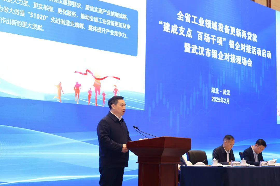 2月19日,全省工业领域设备更新再贷款“建成支点 百场千项”银企对接活动启动暨武汉市银企对接现场会召开,副省长程用文出席会议并讲话,省政府办公厅副主任郭斌主持会议。会上,厅党组书记、厅长汪元程通报了全省工业设备更新及专项再贷款工作情况。