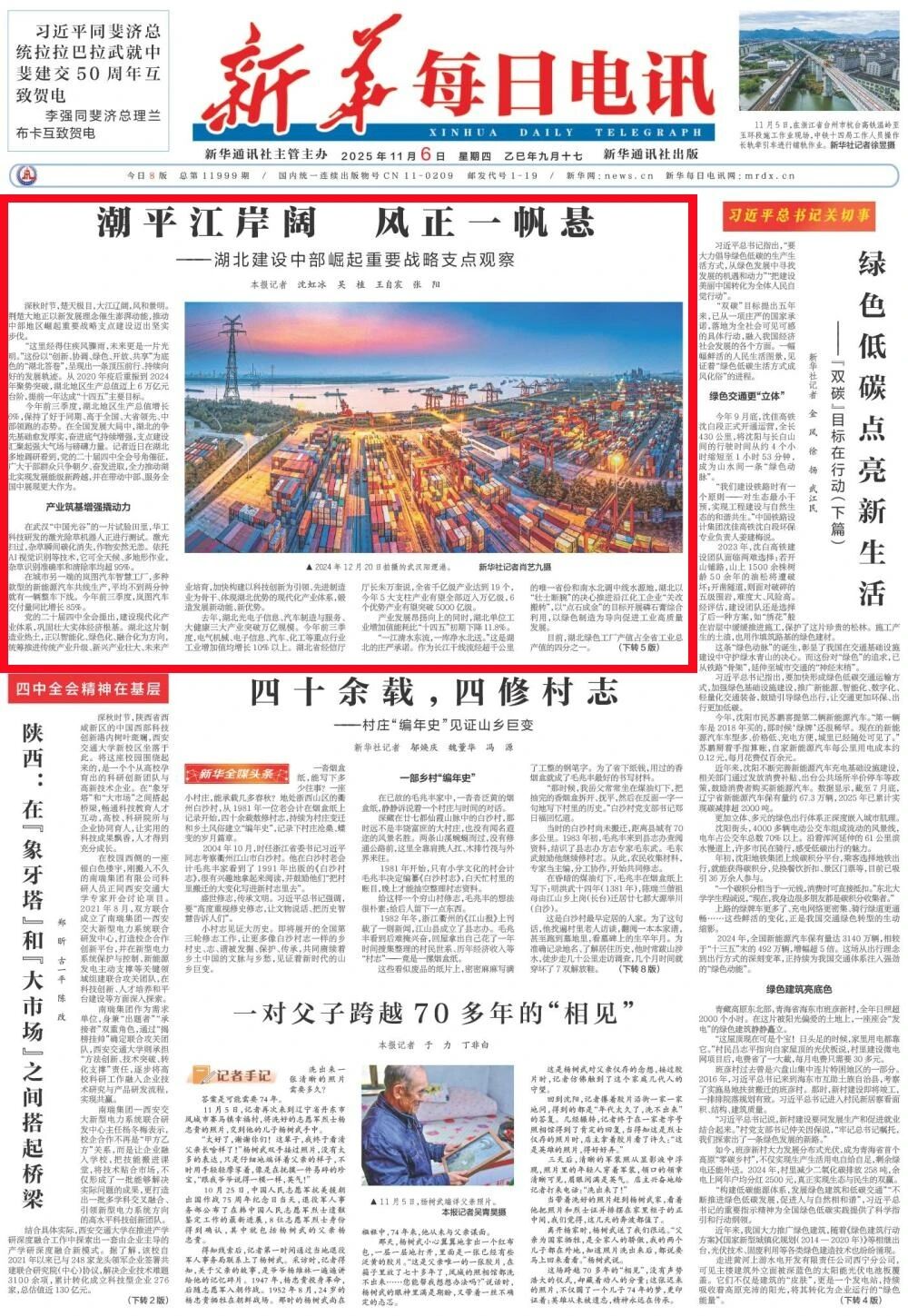 新华社《新华每日电讯》头版头条:湖北建设中部崛起重要战略支点观察