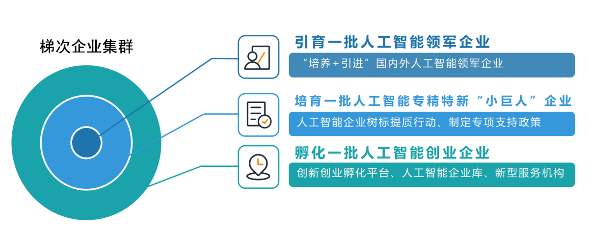 面向人工智能应用创新的共性需求,依托人工智能领域领军企业、科研机构及高等院校等主体建设一批人工智能基础创新平台及公共服务平台,形成统一完备的支撑服务力量。