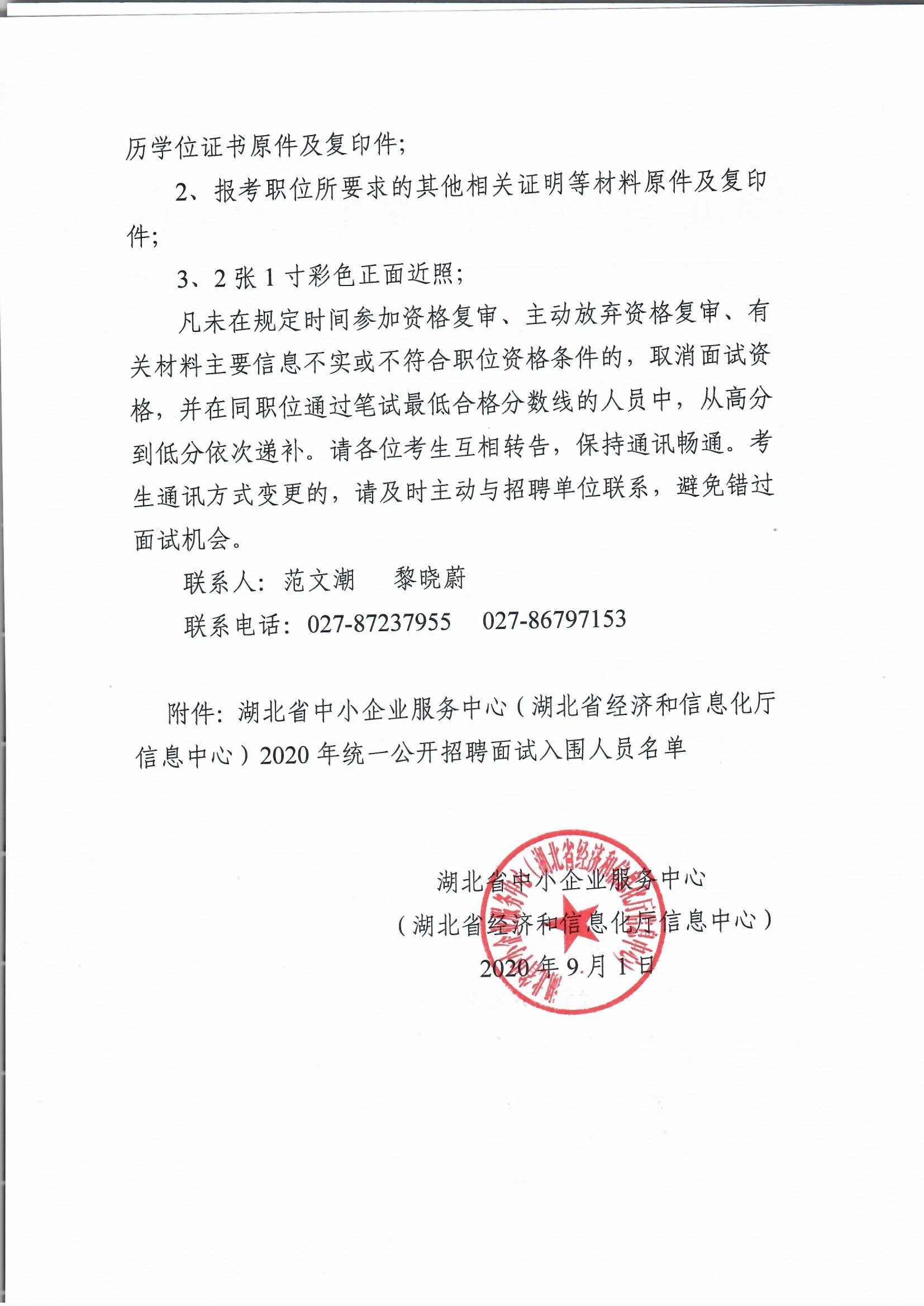 湖北省中小企业服务中心(微密猫 信息中心)关于2020年省直事业单位公开招聘考试资格复审公告