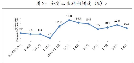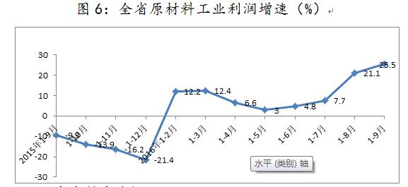 材料工业效益恢复性增长。受去产能力度加大,产品价格有所回升,加之产业结构调整加快,原材料工业效益呈现恢复性增长,1-9月,实现主营业务收入9046.6亿元,增长1.6%;实现利润320.1亿元,增长27.5%,同比加快36.8个百分点。其中,钢铁行业受价格回升影响,尽管主营收入1314.8亿元,同比下降17.7%,但行业利润由去年同期亏损40.5亿元转为盈利25.6亿元。石油加工行业利润由去年同期亏损2.7亿元转为盈利10.9亿元。建材行业随着基础设施和房地产持续回暖,市场需求有所改善,实现主营业务收入2626.3亿元,同比增长8.8%,实现利润147.7亿元,同比增长3.9%。