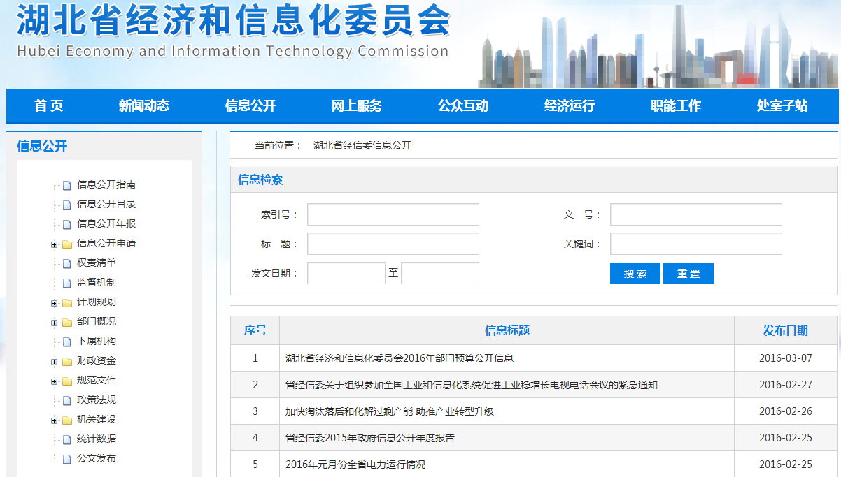 根据《中华人民共和国政府信息公开条例》要求和工作实际,按照“以公开为原则,不公开为例外”的基本要求,制定下发了《湖北省经济和信息化委员会政务公开规定》,修订和完善信息公开目录和信息公开指南。发布了信息公开监督渠道,建立了信息主动公开工作机制、信息发布保密审查机制、新闻发布和新闻发言人机制、信息公开申请受理机制、政府信息公开社会评议制度(试行)、信息公开考核制度(试行)、政府信息公开责任追究制度(试行),确保政务信息公开工作依法有序、科学高效地进行。