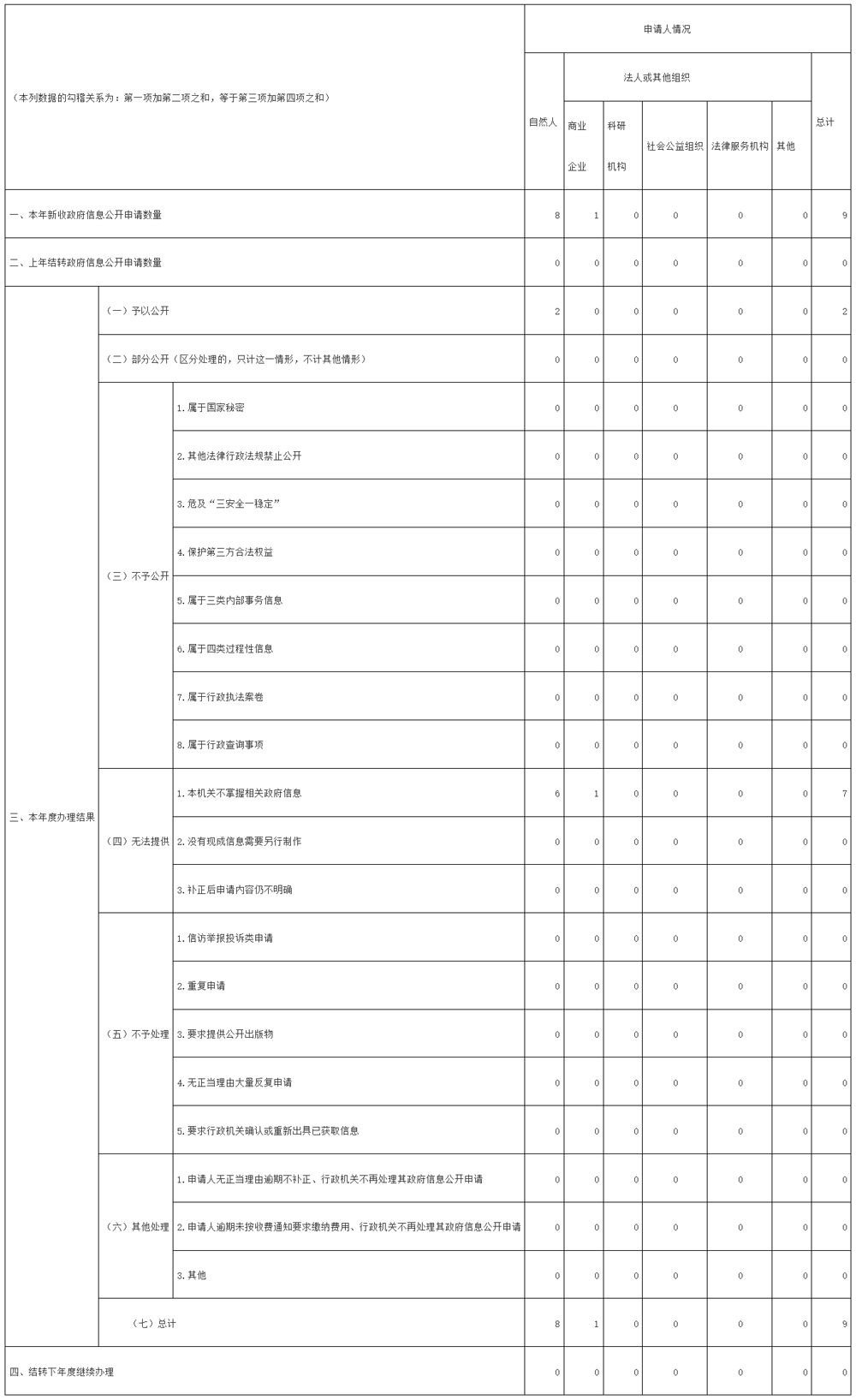 三、收到和处理政府信息公开申请情况
