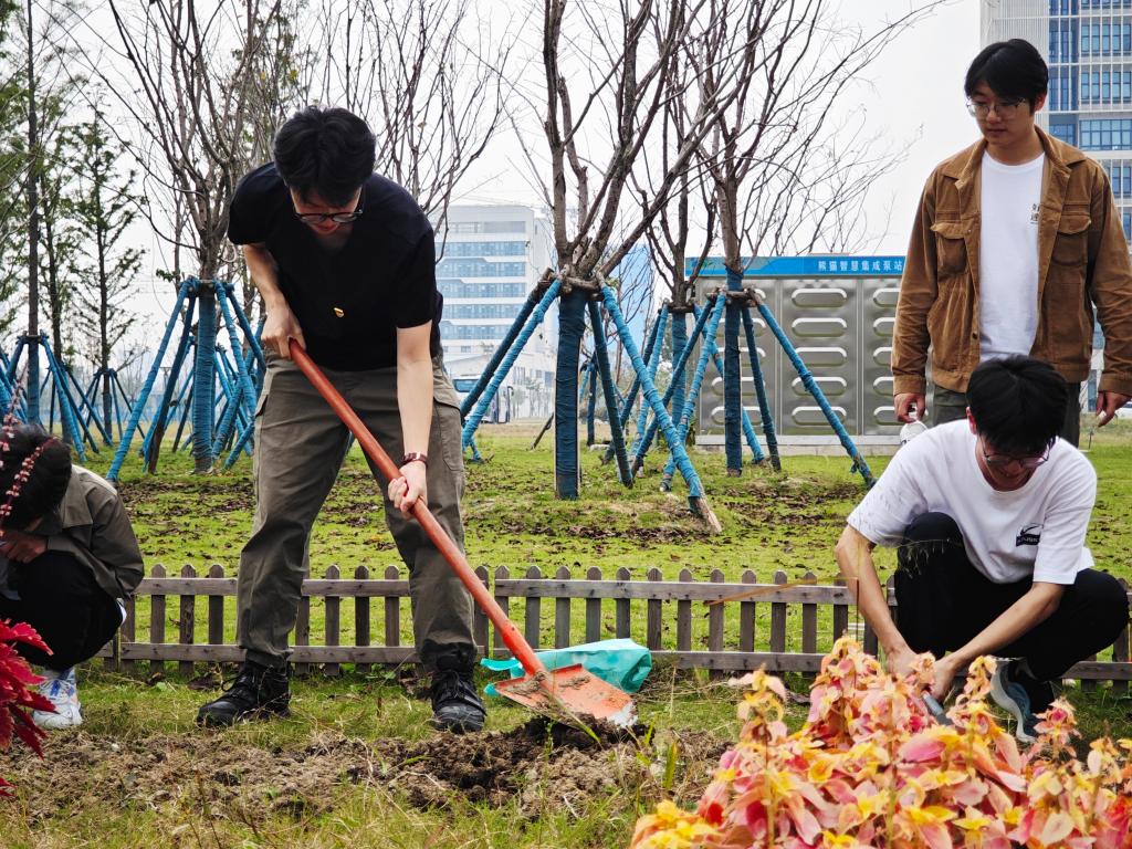 当天下午,全体学员首先参观了清源楼(钱盘生楼)实验室以及温室花房,现场观看了课题组研究生进行的相关实验操作,了解实验室仪器设备与使用方法,通过参观,大家更深入了解科研实践,并充分感受到科研工作的创造性与严谨性,对培养创新精神和实践技能有积极推动作用。随后大家来到“宜路耕耘”劳动实践基地,分工协作,有的挥锄挖穴,有的播撒种子,有的挥锹培土,有的夯实土层,忙得不亦乐乎。鲜红的党旗与学员们忙碌的身影交相辉映,形成了一道靓丽的风景线。经过一下午的劳作,学员们表示对“幸福不会从天降,美好生活靠劳动创造”有了更加深刻的认识,切身体会到一粥一饭来之不易。