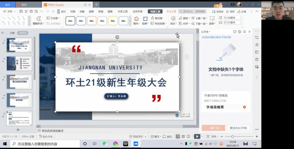 9月11日下午,环境与土木工程学院2021级本科生年级大会暨“战‘疫’·实践·学习·成长”主题云分享活动顺利举办。会议议程主要是新生返校文件解读、团组织关系转接流程介绍、优秀志愿者事迹和感悟分享等。21级新生辅导员李东辉主持会议,全体21级环土新生参与了本次大会。