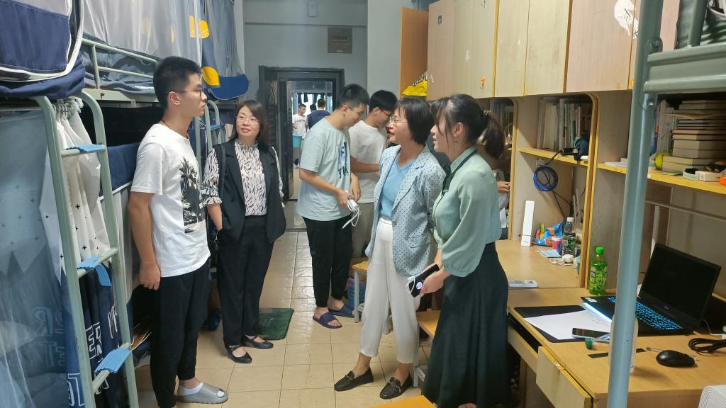 为了给21级新生带去学院的关心、家的温暖,并及时了解学生的思想动态、适应情况及宿舍卫生状况等,以确保新学期各项工作的有序、平稳开展。10月11日下午,在学院党委书记李艳的带领下,学院党委副书记、副院长胡娟,分团委书记兼学工办主任周佳赟、辅导员李东辉共同前往李园、榴园学生宿舍,走访看望到校新生。