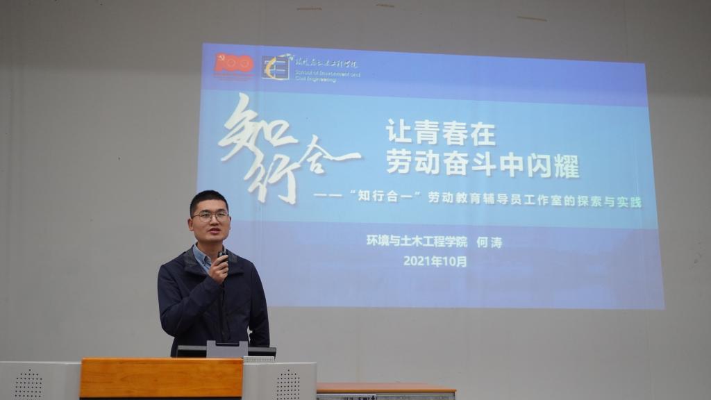 何涛紧密围绕新时代加强劳动教育的背景,着力提升大学生劳动教育意识。他期望新生加强劳动体验,提升劳动能力,加强双创体验,提升创新能力,加强志愿服务,提升劳动品质。通过对新生的思想引领,培养新生们的劳动价值观、劳动精神、劳动态度 ,鼓励新生积极参加劳动锻炼。