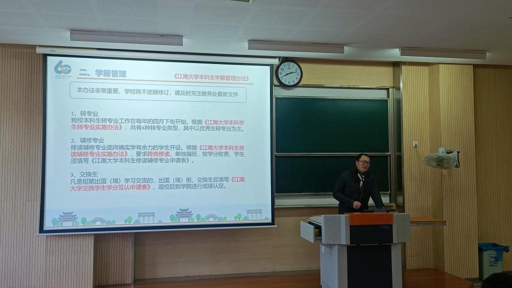 王硕老师首先讲解了21级新生的人才培养方案,对学生大学四年的应修学分、课程性质、课程开设学期等内容进行了详解。然后,王硕老师学籍管理结合学籍管理的典型案例,对学籍注册、课程考核、考试纪律、降级、休学与复学、退学、毕业与结业等方面作了详尽的阐述。最后,王硕老师对微密猫