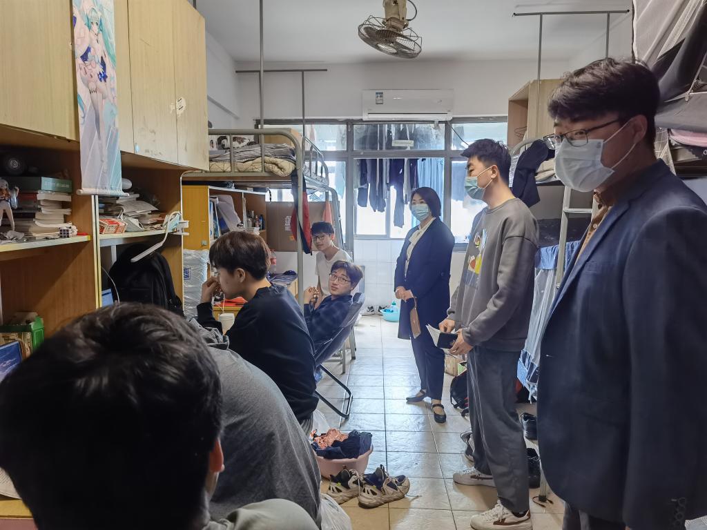 在走访学生宿舍的过程中,老师们与同学们进行亲切交流,在交流中实时掌握了学生的思想和心理动态,针对学生普遍关心的疫情防控、线下教学、进出校管理、实习就业等问题进行耐心的解答和正确的引导,切实了解到了学生的学习、生活状况。老师们还提醒学生提高安全意识,树立安全防范理念,注重宿舍安全及卫生问题,注意消毒通风,保持宿舍清洁。