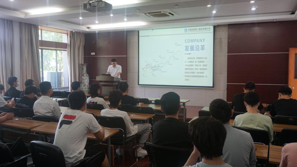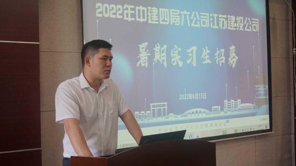 2022年6月14日下午,中建四局六公司江苏建投公司2022暑期实习生招募活动在环土学院楼D303成功举行。中建四局六公司江苏建投公司党委副书记、工会主席车其杰,总工程师宋千军,人力资源部经理杨勇、环境与土木工程学院党委副书记、副院长胡娟,辅导员薛羚伟参加了活动。