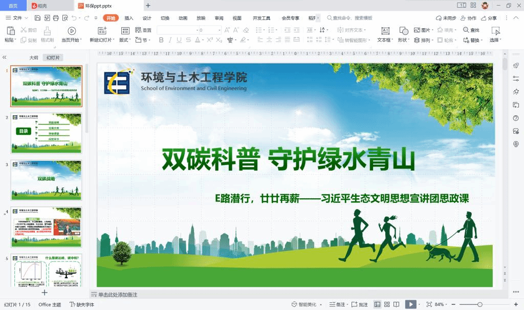“绿水青山就是金山银山”。2020年9月22日,习近平总书记在第七十五届联合国大会上宣布,中国力争在2030年前二氧化碳排放量达到峰值,力争在2060年前实现碳中和目标。在疫情防控阶段,“E路潜行”团队开展了线上以环保科普为主题的培训活动。培训内容主要分为双碳战略、环保知识以及环保措施三个部分。“双碳”,是指碳达峰与碳中和,“双碳”目标的提出是我国主动承担应对全球气候变化责任的大国担当,是一场广泛而深刻的经济社会系统性变革。通过对双碳战略与环保知识的学习与讨论,团队成员认为“双碳”目标作为一种挑战的同时也是一种机遇。对大众而言,“双碳”可以说是倡导低碳生活,涉及到交通出行、居住建筑、生产生活方式等多个方面。
