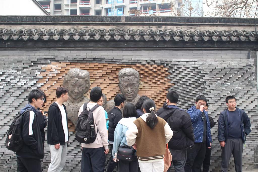 同学们瞻仰钱钟书与杨绛先生浮雕