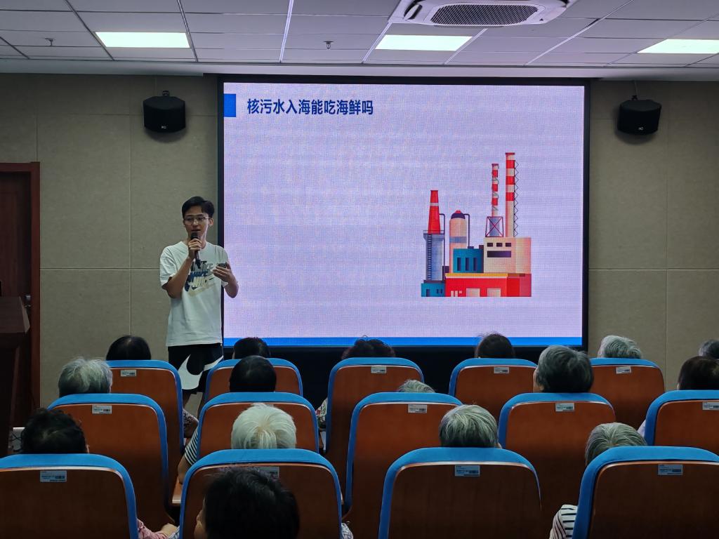 为增强社区民众对核污水危害的认知,消除民众对核污水的恐慌和误解,2023年9月28日,环境与土木工程学院“E路潜行科普宣讲团”走进夏家边社区开展志愿宣讲。院学工办主任兼分团委书记薛羚伟、辅导员李东辉、刘子琪、院团委志愿者工作部、大学生双碳科普协会志愿者参与活动,2023级环境工程硕士研究生沈凯担任主讲人。