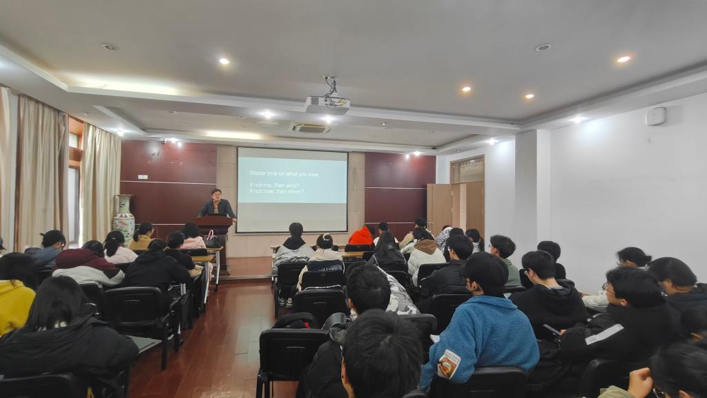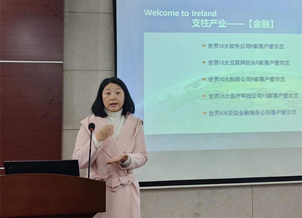 -爱尔兰都柏林大学合作办学项目宣讲会。院党委副书记、副院长胡娟,无锡江达留学服务中心有限公司总经理王力翊等相关人员,100余位本科生参会。辅导员李东辉主持宣讲会。