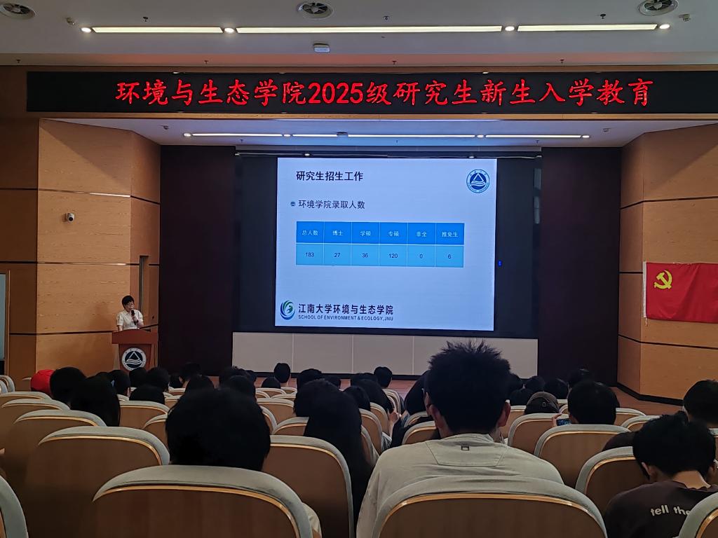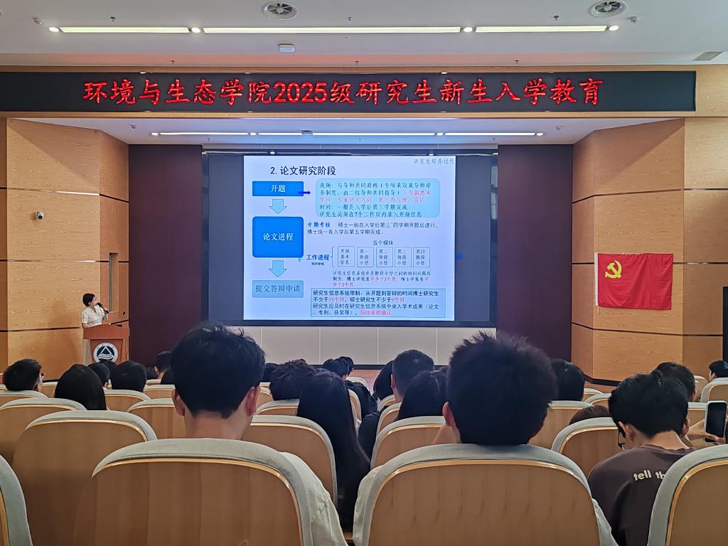 在东氿校区组织2025 级研究生新生在清源楼(钱盘生楼)报告厅开展研究生系列新生入学教育,其中研究生教学秘书王晓雯老师围绕培养方案、课程设置、专利申请及学术论文写作等方面,为2025级研究生新生带来了一场“干货满满”的入学导航。