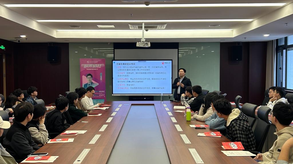 在清源楼(钱盘生楼)A210开展“职来值往—生涯领航与就业指导”专题讲座。本次讲座聚焦公务员与选调生招考政策,邀请资深公考培训老师吕洪刚担任主讲,40余名学生参会,讲座由辅导员李猛主持。