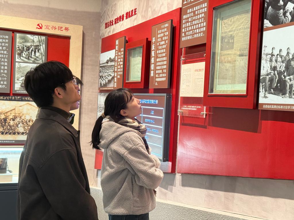活动的第一站,支部党员们来到宜兴党史陈列馆。循着历史的足迹,大家重点参观了“争取人民解放的宜兴篇章”、“社会主义建设的宜兴记忆”、“改革开放实现中国梦的宜兴实践”等核心展区。透过一份份承载着历史记忆的文献、一帧帧定格奋斗瞬间的影像,系统了解了宜兴党组织如何团结带领人民,在革命年代披荆斩棘,在建设岁月艰苦创业,在改革大潮中开拓进取的非凡历程。这段沉浸式的红色研学,不仅让党员们对宜兴地方党史有了具象而深刻的认识,更从一代代共产党人前赴后继、矢志不渝的奋斗中,汲取了强大的精神力量,进一步坚定了理想信念和历史担当。