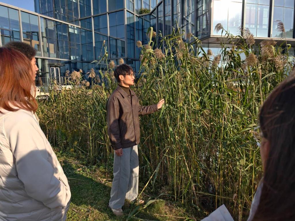 随后,支部将课堂从展厅移至自然湖畔,在东氿公园开展了以“专业践行,守护碧水”为主题的生态实践活动。大家手持工具,对公园沿岸及绿化带进行了垃圾清理,重点清除了塑料残留、烟头纸屑等难降解污染物,以切实行动还原公园的洁净面貌。与此同时,党员们还充分发挥专业特长,对东氿湖的湖滨带植物群落进行了现场调研,实地勘察苦草、芦苇,狐尾藻等典型植被生长状况,细致记录植物分布密度、群落结构及生态功能发挥情况,并结合专业知识就湖滨带生态系统的健康状况及保护策略进行了初步的探讨与交流,实现了从理论到实践的跨越。