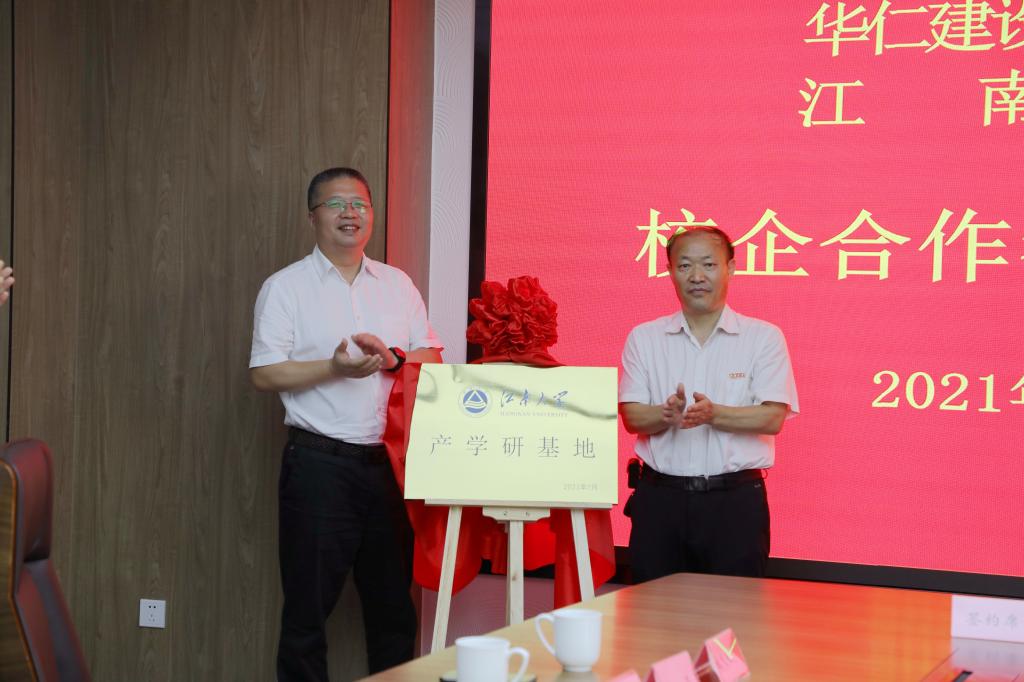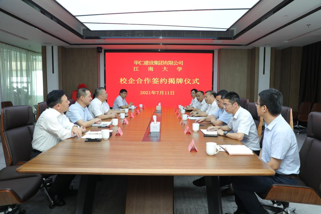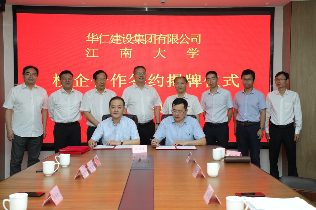 与华仁建设集团有限公司在华仁大厦举行校企合作签约揭牌仪式。无锡交通建设工程集团有限公司董事长许青凯、华仁建设集团有限公司董事长蒋海峰、副董事长裴仁年,微密猫