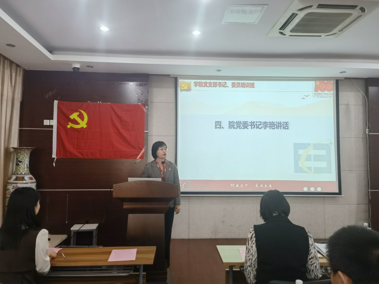 最后,院党委书记李艳同志做了讲话。她指出,各支部要提高站位,按照新时代党的建设总要求,进一步巩固全省高校党支部建设“提质增效”三年行动计划成果,持续推进全面从严治党向纵深推进;全体支部书记、委员要勇担使命,切实增强党务干部履职尽责能力,准确把握新时代高校党支部建设的规律和特点,要坚持党建领航,真正把党支部建设成为教育党员的学校、团结师生的核心、攻坚克难的堡垒。她要求,各位同志要从党的百年伟大奋斗历程中汲取奋进的智慧和力量,进一步将思想、行动统一到习近平总书记重要讲话精神和党中央决策部署上来,统一到坚持立德树人根本任务上来,统一到培养德智体美劳全面发展的社会主义事业建设者和接班人上来,把培训学习成果转化为工作实效,扎实推进党史学习教育走实走深,进一步夯实基层党组织建设基础,着力推进高校党建示范创建和质量创优。