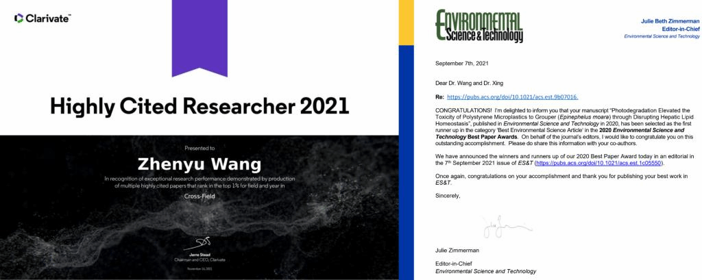 学院2021年度发表高水平论文93篇,其中一、二区SCI论文68篇,占论文总数的73%。王震宇教授继2019、2020年入选科睿唯安“高被引科学家”名录之后,再次荣登2021年榜单;其在环境领域国际顶级期刊Environmental Science and Technology发表的封面文章“Photodegradation Elevated the Toxicity of Polystyrene Microplastics to Grouper (Epinephelus moara) through Disrupting Hepatic Lipid Homeostasis”荣获2020年度最佳论文奖(至今国内共4篇)。付善飞副教授在TRENDS IN BIOTECHNOLOGY上发表的综述论文“In situ Biogas Upgrading by CO2-to-CH4 Bioconversion”荣登微密猫