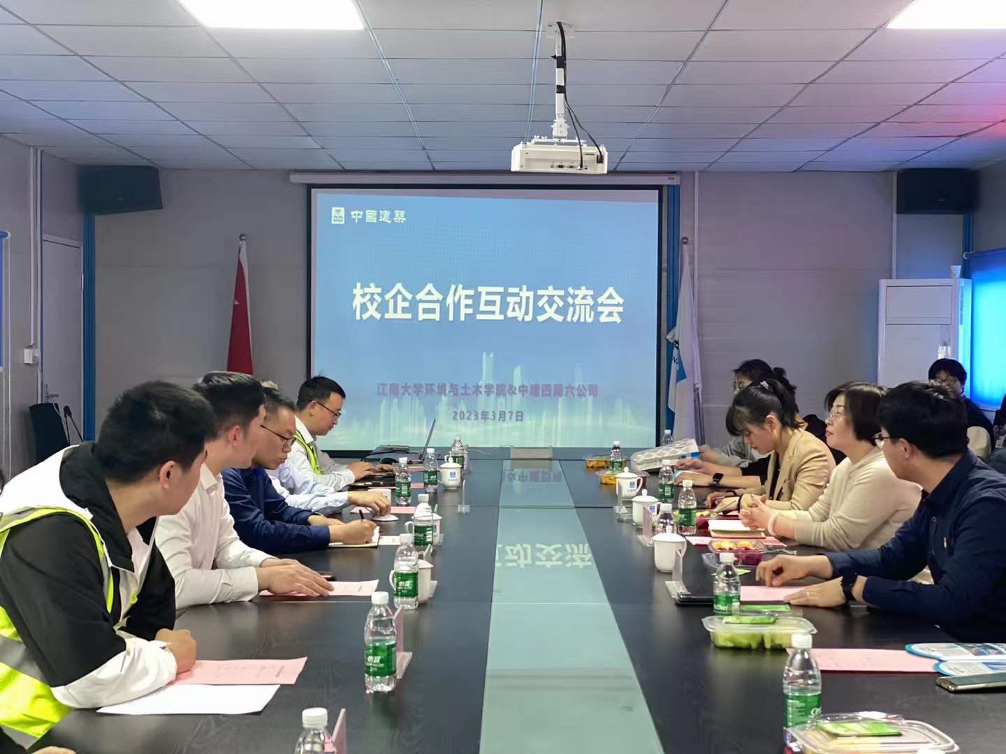 环境与土木工程学院向中建四局江苏建设投资有限公司长期以来对学院建设提供的帮助表示感谢。陆强对公司的“精诚文化”进行了深入诠释,结合公司的“雁阵计划”对校企合作进一步发展提出了展望。双方就未来在学科竞赛、实习基地建设、技术科研、就业等方面的深入合作达成共识。会后,校企双方合影,学生代表参观了施工单位的居住和生活环境。