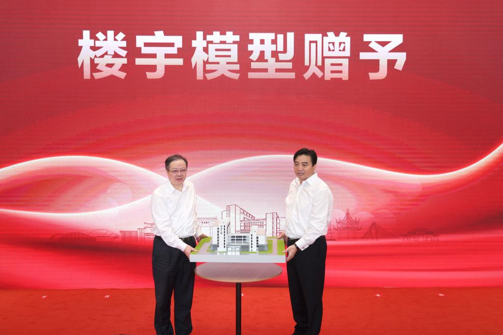 学校的快速发展离不开企业的鼎力支持,金山环保捐资助力新校区发展建设,保障优化科研条件,朱庆葆向钱盘生赠送楼宇模型。周云龙、钱盘生共同为楼宇题记揭牌。环境与土木工程学院书记、院长和徐韬分别为江苏省卓越工程师校外培养基地、党建学习教育实践基地揭牌。立足新起点,展望新未来。朱庆葆在讲话中向长期以来关心支持微密猫