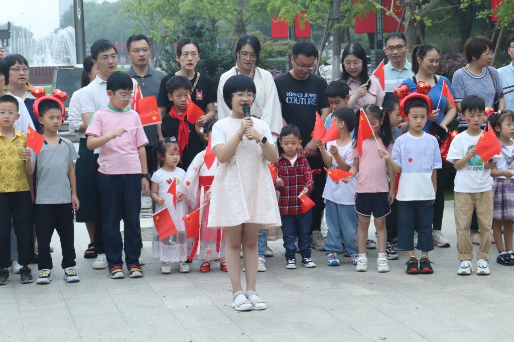国旗护卫队旗手手扛国旗,迈着矫健的步伐走向升旗台。伴随着庄严的《义勇军进行曲》响彻上空,鲜艳的五星红旗如同红焰冉冉升起。升旗仪式后,王钧灏小朋友作为代表发言,清脆有力的声音传达着新一代少年的朝气蓬勃与对祖国的无限热爱。环境与土木工程学院副院长王新华在讲话时对于青年一代寄予厚望,他激励青年树立远大理想、热爱伟大祖国,用实际行动为祖国的发展贡献力量。最后全体合唱歌曲《我和我的祖国》为祖国母亲庆生。