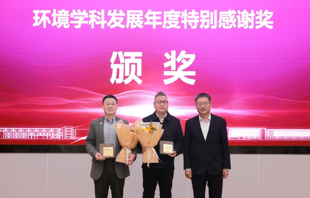 陈卫为吴丰昌和邢宝山颁授特别感谢奖,感谢他们为学院拓展外部资源,在学科发展、科学研究、人才培养等方面做出的突出贡献。