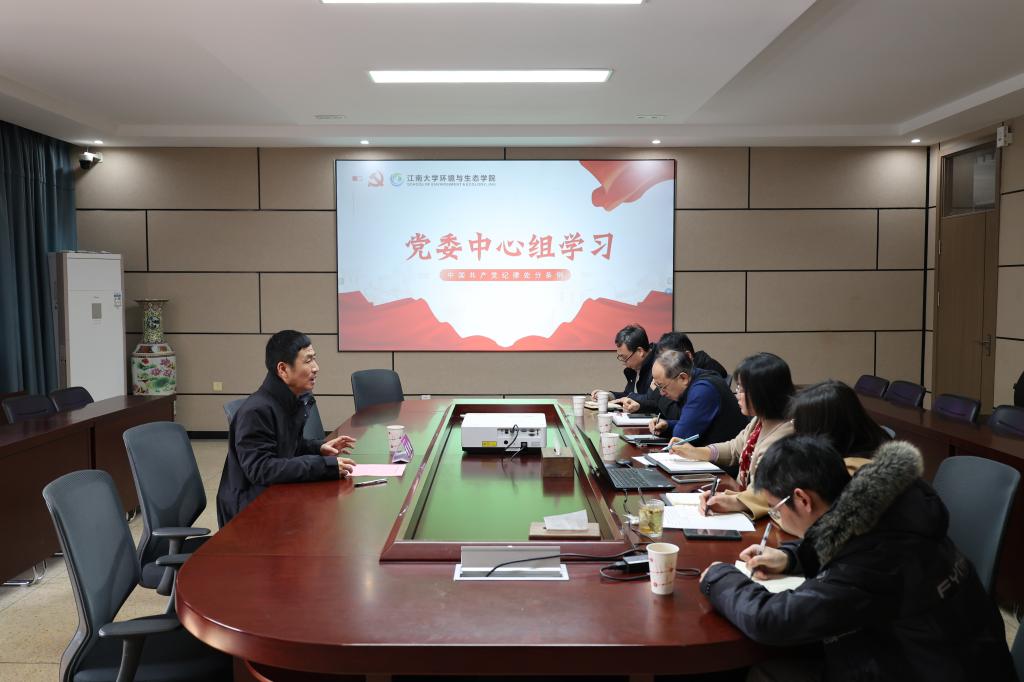 最后,戴月波指导讲话。他以毛泽东和黄炎培的“窑洞对”为例,以鲜活的举例说明纪律严明是我们党的优良传统和政治优势,是党的自我革命的鲜亮底色。他表示进入新时代以来习近平总书记围绕全面加强党的纪律建设提出一系列新思想新观点新论断,把纪律建设摆在更加突出位置,坚持严字当头、全面从严,充分发挥纪律建设标本兼治的利器作用。这次《条例》再修订,全面贯彻习近平新时代中国特色社会主义思想和党的二十大精神,坚持问题导向和目标导向相结合,实现制度的与时俱进,为以中国式现代化全面推进强国建设、民族复兴伟业提供坚强纪律保障。环境学院以此作为中心组学习的主题,说明学院党委准备在前、谋划在前,推动落实在先,非常值得肯定。他希望:一是学院党委要全面学重点学,不断加强自身建设,提高自身要求和工作标准,切实担负起全面从严治党政治责任;二是要抓好《条例》的学习宣传和贯彻落实,真正把《条例》的严肃性和权威性树立起来。三是期待环境学院上下齐心,学科发展迈上新台阶,为学校建设发展添砖加瓦。