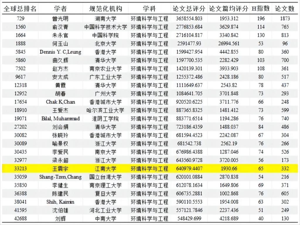 王震宇教授继2022年后再度入选该榜单,标志着我校环境学科科研水平和国际影响力正持续提升。