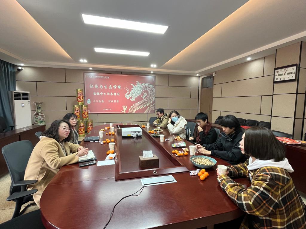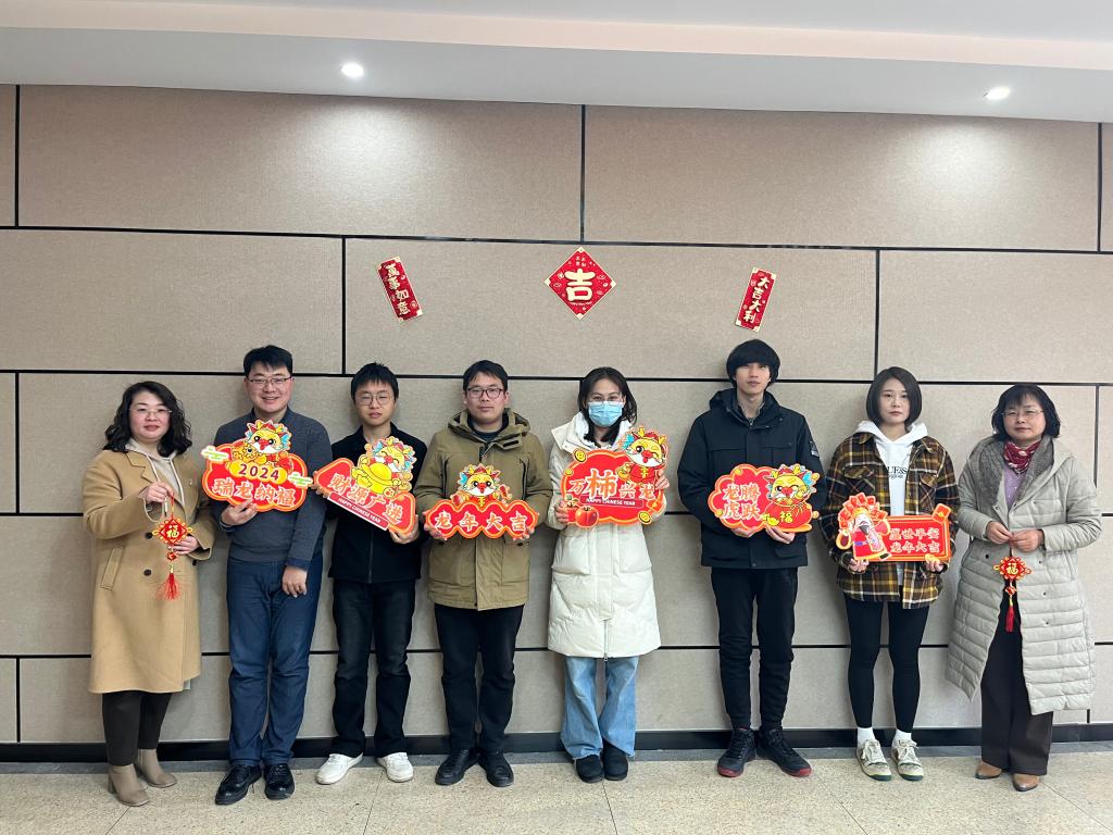 胡娟细致询问每位同学的留校原因,对同学们留校开展实验、备战学科竞赛、参加实习实践表示充分的肯定和鼓励,并关心大家留校期间的生活、学习情况,提醒大家一定要注意安全。李艳向全体同学致以新春的问候,她指出2023年是全面贯彻落实党的二十大精神的开局之年,是学院第八轮任期目标的开局之年,全院师生凝心聚力,奋力答好“教育强国,江南何为”的答卷,开创了学院发展的新局面。学院是同学们坚强的后盾,为同学们的成长和发展保驾护航,希望同学们站在崭新的起点上,合理规划、矢志奋斗,在2024年收获自己的梦想,一起携手向未来。留校学生也结合自己的科研、学习和生活情况与老师们进行交流。最后,老师们向同学们赠送了新春大礼包,祝福同学们龙行龘龘,前程朤朤。
