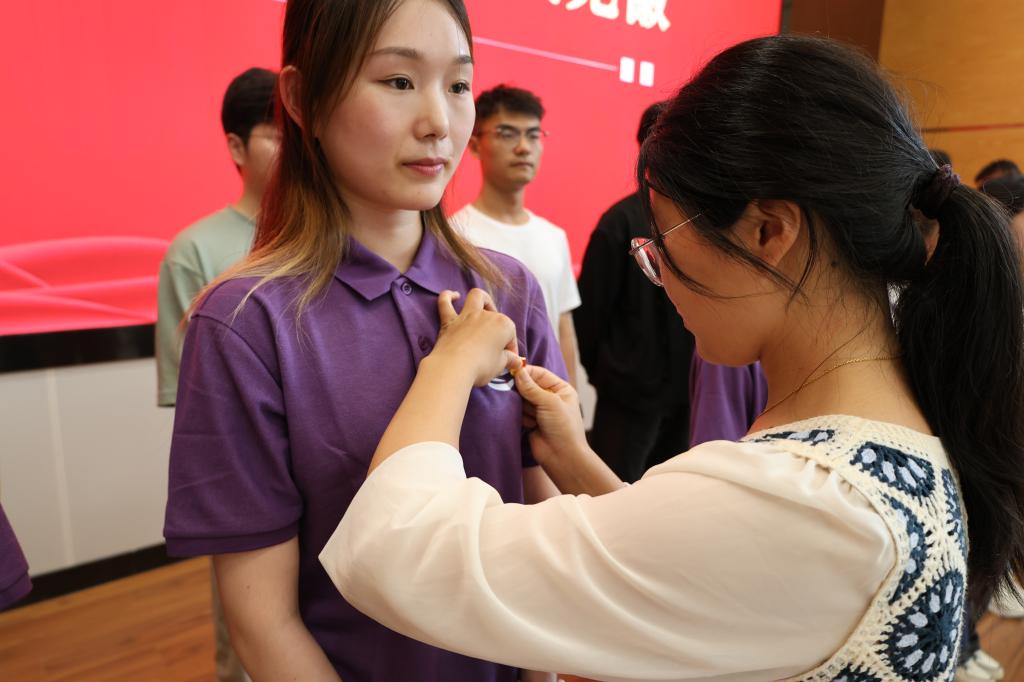 研究生代表朗诵《祖国,我为您高歌!》,表达了矢志投身美丽中国建设的决心。院党委书记李艳宣读新党员名单,教工支部书记郁红艳、支委陈思思为新党员佩戴党徽,在辅导员周期的带领下,全体党员面向党旗庄严宣誓。本科生环境专业党支部新党员代表陈云帆发言表示会积极发挥自身的先锋模范作用,继续深化专业知识的学习,强化实践技能的锻炼,为推进生态文明建设、实现美丽中国贡献青春力量。