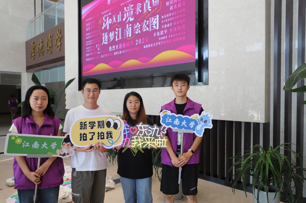 新生报到当日,学院在蠡湖校区和东氿校区分别设置了报到点,热情迎接新生们的到来。学院为前来报到的新生发放精心制作的主题纪念帆布包、笔记本、卡套、新生心理手册及研究生手册,帮助新生了解学校的校规校纪、奖惩制度,更好的融入和适应新的学习生活环境。辅导员周期老师和志愿者们积极参与其中,耐心解答新生们的疑惑,助力他们顺利入学。志愿者们整齐着装,脸上洋溢着热情的笑容,热情引导新生们到报到点办理报到手续。为了帮助和鼓励有需要的新生,学院设立了“2024迎新绿色通道”,为新生提供便捷服务,助力学生安心无忧入学。