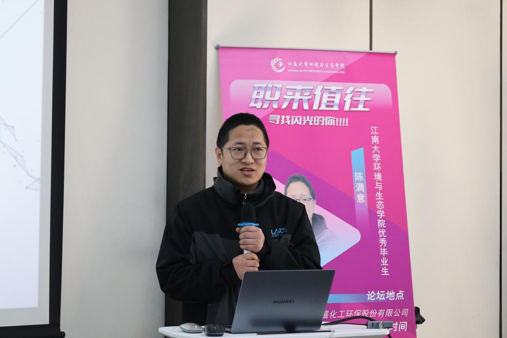 高映海研发主任和陈满意设计副经理作为本校环境工程2012届毕业生,他们结合自身求职就业经历、个人发展经历,,为学生提供实用建议。他们特别强调“技术岗需突出解决问题的能力”,建议学生在校期间多参与实践项目积累经验。总经理刘德军鼓励学生要找对平台,寻找适合自己的、自己也感兴趣的公司,在工作中获得成长。