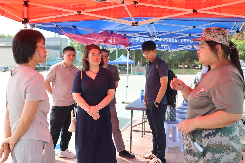 校党委常委、副书记倪松涛,人武部部长周伟涛亲临现场指导工作,与带训辅导员和一线教师亲切交流,详细了解新生的体能状况、训练进度、适应情况及思想动态,并关切询问了学院近期搬迁工作的衔接与学生安置情况,对学院的领导统筹和教师们的辛勤付出予以充分肯定。