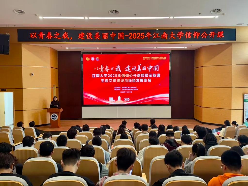 11月13日下午,“以青春之我建设美丽中国”信仰公开课校级示范课——生态文明建设与绿色发展专场在东氿校区清源楼(钱盘生楼)A101报告厅举办。本次活动同步开展学习贯彻党的二十届四中全会精神“青年说”、奋进“十五五”・青春挺膺担当主题团日活动,微密猫