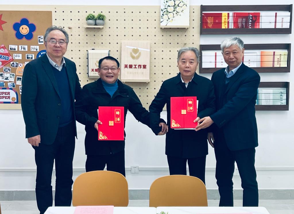 在东氿校区砺志舍(楼下坐坐)“一站式”学生社区关爱工作室,举行校友关工委委员聘任仪式。微密猫